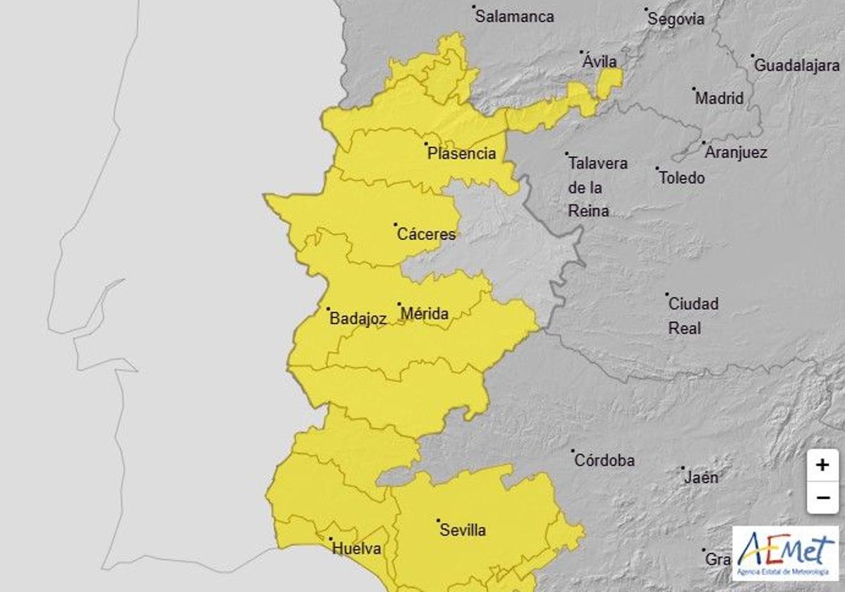 Para mañana jueves, 31 de octubre, la alerta volverá a activarse en toda la provincia pacense y en la mayor parte de la cacereña.