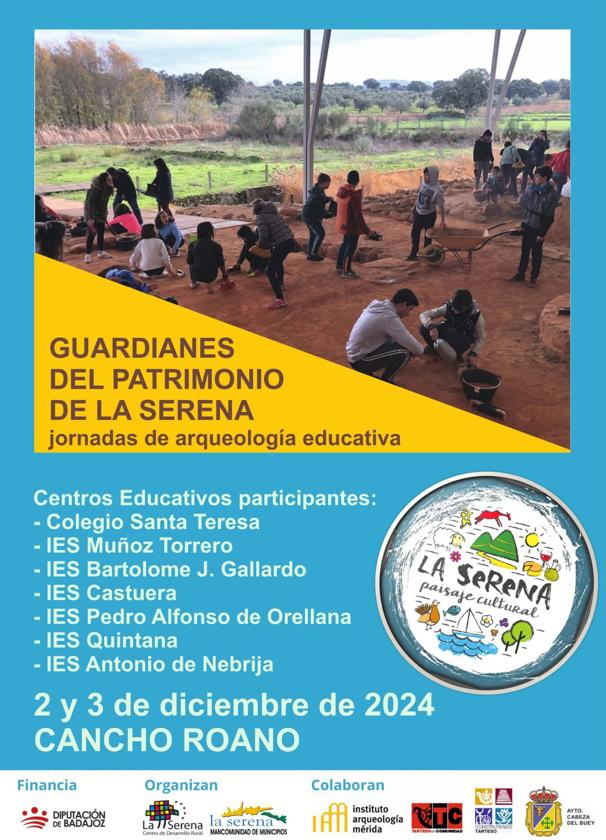 El Servicio de Gestión Cultural de la Mancomunidad de Municipios de La Serena y el CEDER 'La Serena', han organizado para los próximos días 2 y 3 de diciembre unas jornadas arqueológicas educativas que se van a llevar a cabo en el yacimiento de Cancho Roano con el alumnado comarcal de primero de ESO de los centros educativos de enseñanza secundaria de Zalamea de la Serena, Cabeza del Buey, Campanario, Castuera, Orellana la Vieja y Quintana de La Serena.