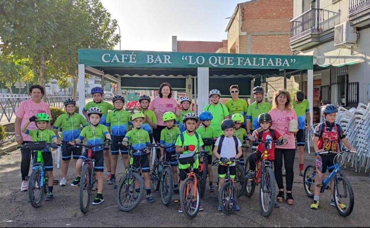Alumnos de la Escuela Ciclista 'Cancho Roano' de Zalamea realizan una ruta solidaria a favor de la AOEX