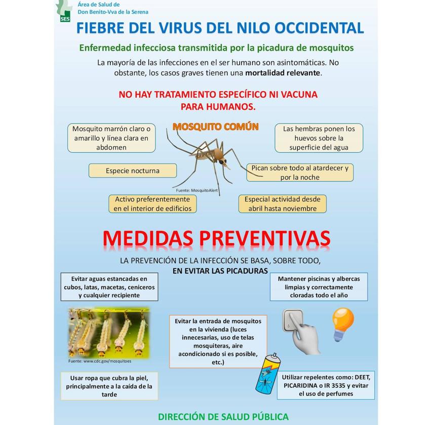 El Ayuntamiento de Zalamea de la Serena ha emitido un comunicado dirigido a la población con información sobre las medidas preventivas proporcionadas desde el Servicio Extremeño de Salud en relación a la Fiebre del Nilo Occidental.