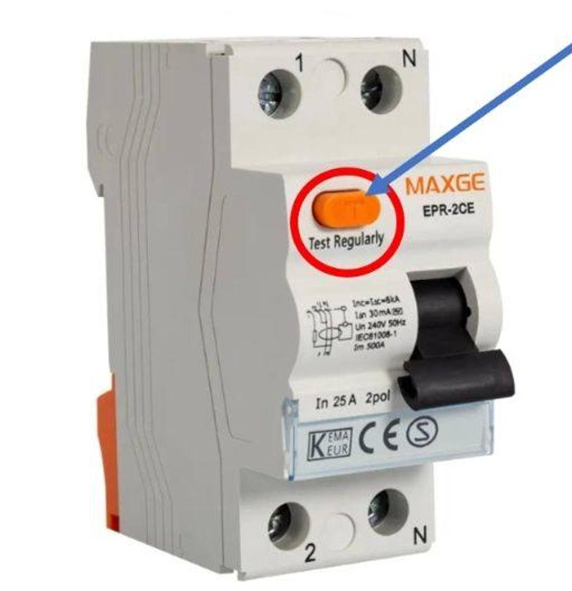 Para realizar la prueba del protector diferencial, basta con pulsar el botón que aparece en el cuadro de protecciones interiores de la vivienda o local y comprobar que se interrumpe el suministro de forma correcta. Hacerlo con una bombilla encendida y comprobar que se apaga dicha bombilla.