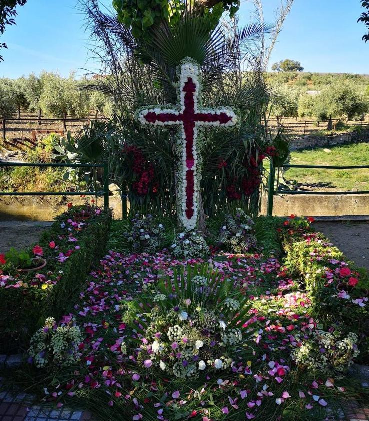 La ganadora ha sido una cruz sencilla y preciosa elaborada completamente con flores, palmas y plantas, situada en un entorno natural. Claveles, palmas y pétalos de rosas se ha unido para dar vistosidad a esta cruz natural. Ha sido un diseño que ha recordado mucho al del pasado año, si bien en 2023 prevalecieron el rojo y el blanco y este año se han decantado más por los tonos rosas en las flores escogidas.