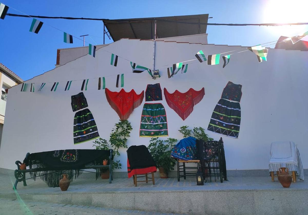 Las vecinas de esta calle, con mucha ilusión, elaboraron una diseño que combinaba elementos decorativos como botijos con mantones y plantas que le han dado el toque natural.