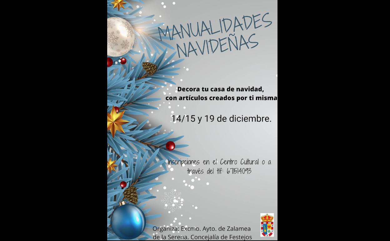 Dentro de este marco, los próximos días 14, 15 y 19 de diciembre se llevarán a cabo unos talleres de Manualidades Navideñas orientadas, en esta ocasión, a un público adulto en el Centro Cultural de la localidad y organizados por el Ayuntamiento de Zalamea de la Serena en los que los asistentes podrán crear artículos con los que después poder decorar sus casas para la presente Navidad.