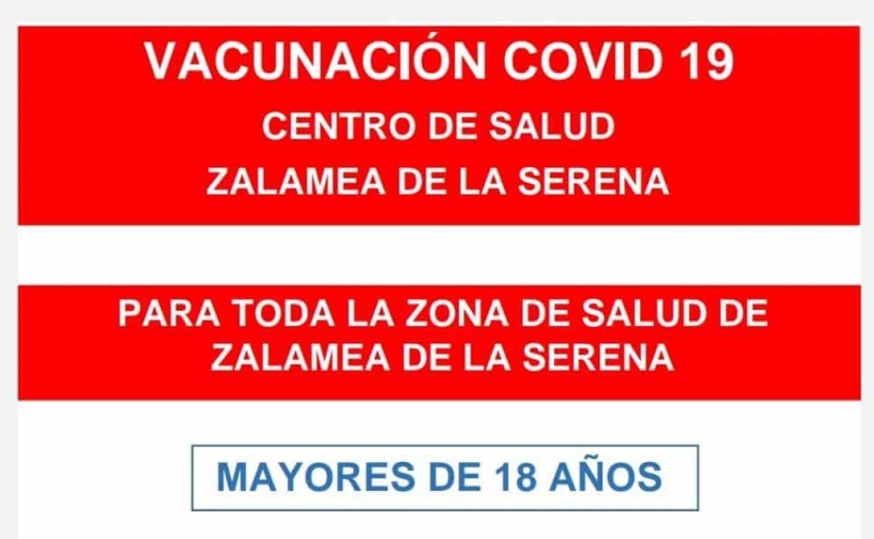 El Centro de Salud de Zalamea de la Serena acogerá el próximo lunes 11 de abril una jornada de vacunación masiva dirigida a los vecinos de todas las poblaciones que conforman su área de salud.