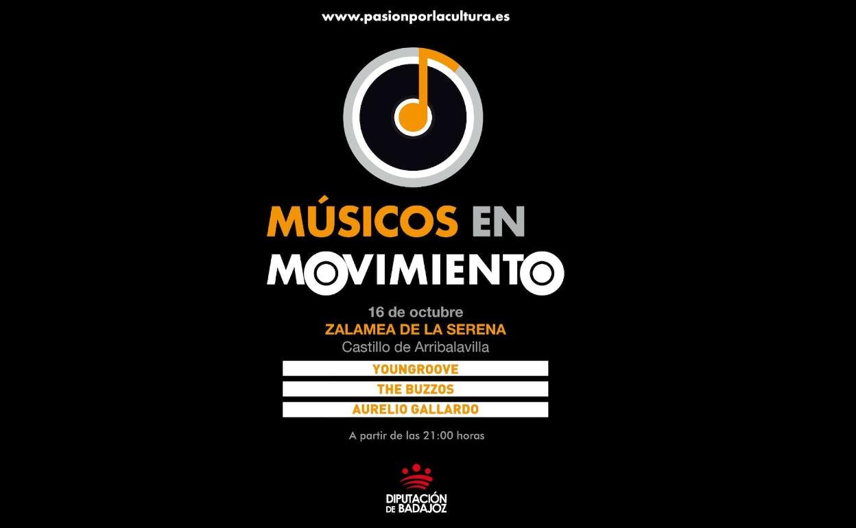 El festival 'Músicos en Movimiento', organizado por el Área de Cultura y Deportes de la Diputación de Badajoz, llegará a Zalamea de la Serena el próximo sábado 16 de octubre con las actuaciones de Youngroove, The Buzzos y Aurelio Gallardo.
