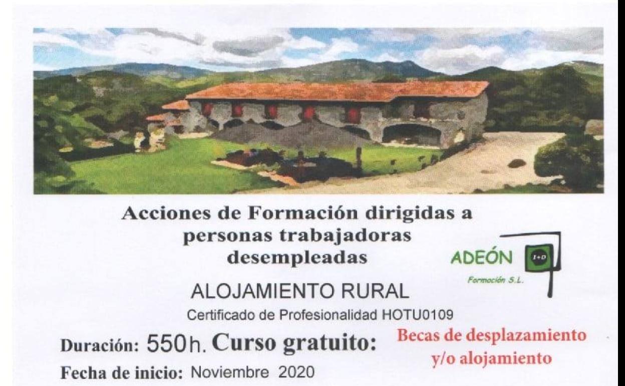 Convocado un curso gratuito de 'Alojamiento Rural' dirigido a personas trabajadoras desempleadas
