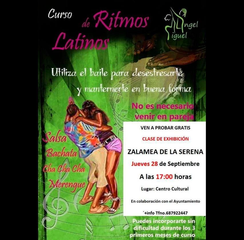 El próximo jueves, día 28 de septiembre, se llevará a cabo una clase de exhibición en el Centro Cultural de Zalamea de la Serena de Ritmos Latinos. La clase comenzará a las 17.00 horas.