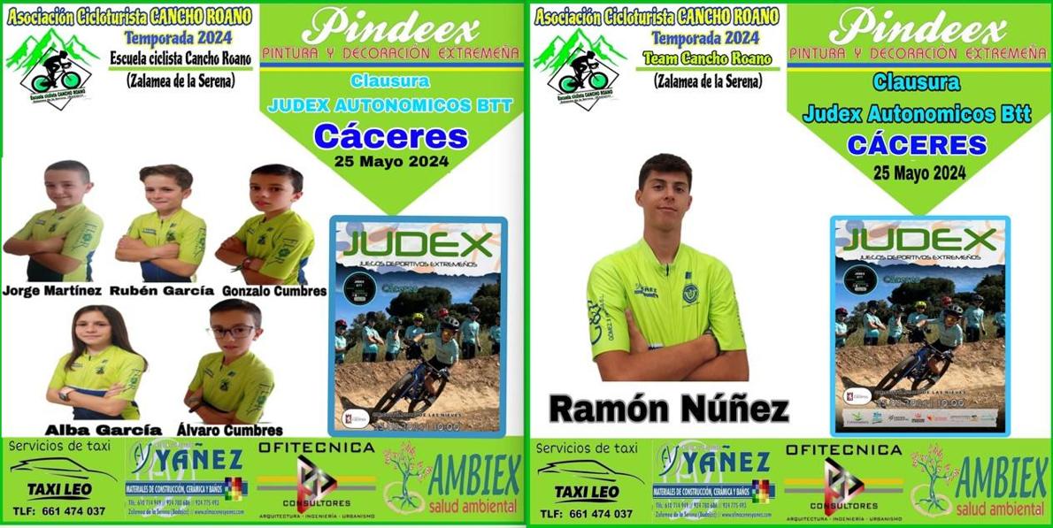 Tras su presencia en la clausura de los Judex de Carretera, este fin de semana, los pequeños ciclistas Jorge Martínez, Rubén García, Gonzalo Cubmres, Alba García y Álvaro Cumbres, estarán en Cáceres en los BTT, al igual que Ramón Núñez, quien compite en categoría Junior, y llega de participar en la Azuaga Bike.