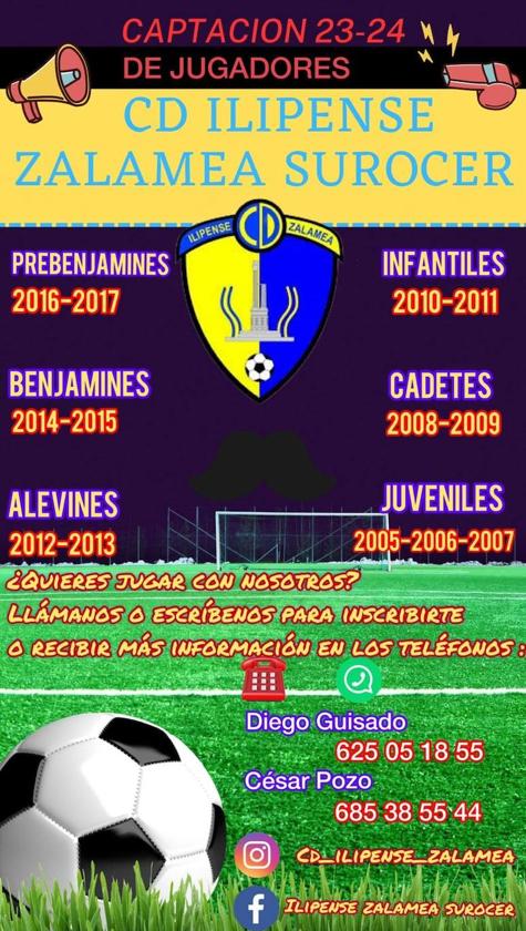 Quieres estén interesados en inscribirse y formar parte del club la p´roxima temporada pueden ponerse en contacto con ellos a través de los teléfonos 625 05 18 55 (Diego Guisado) o 685 38 55 44 (César Pozo), así como en sus perfiles en redes sociales CD_Ilipense_Zalamea (Instragram), Ilipense Zalamea Surocer (Facebook).