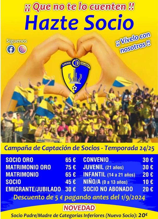 El club ofrece diferentes tipos de abonos, entre ellos Socio no abonado, para ayudar al clubEl CD Ilipense ha comenzado ya con el trabajo para prepararse de cara a la próxima temporada 2024/2025 y, con el lema «¡¡Que no te lo cuenten!! Vívelo con nosotros» han iniciado la campaña de socios para lograr la renovación de los socios actuales y aumentar las altas de nuevos abonados.