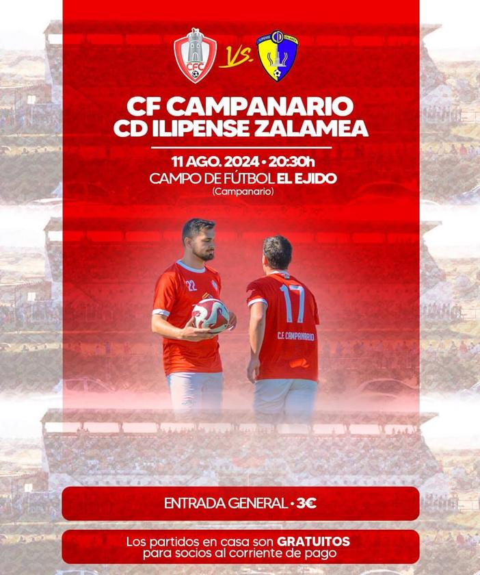 En esta ocasión se enfrentarán, fuera de casa, al CF Campanario. El partido, que comenzará a las 20.30 horas, se jugará en el Campo de Fútbol El Ejido, en la localidad de Campanario.