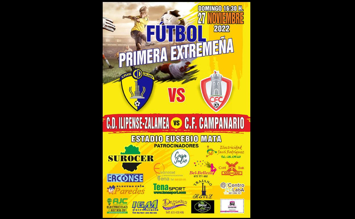 El próximo domingo, día 27 de noviembre, el CD Ilipense-Zalamea recibirá en casa al CF Campanario.
