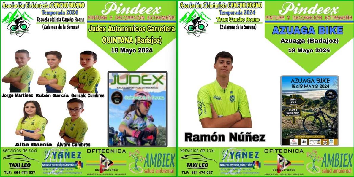 Por su parte, el domingo 19 de mayo, Ramón Núñez, quien compite en categoría junior, estará en la Azuaga Bike para enfrentarse a una nueva media maratón. El ciclista de la AC Cancho Roano se enfrentará a una prueba de 55 kilómetros con 1.100 metros de desnivel.