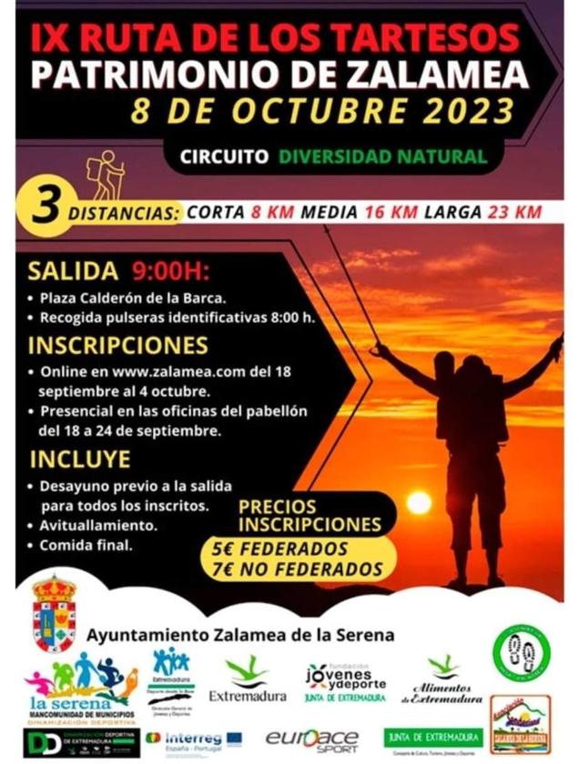 La IX edición de la 'Ruta de los Tartesos. Patrimonio de Zalamea', encuadrada dentro del circuito 'Diversidad Natural', ya tiene fecha de celebración. Será el día 8 de octubre de 2023, , en Zalamea de la Serena.