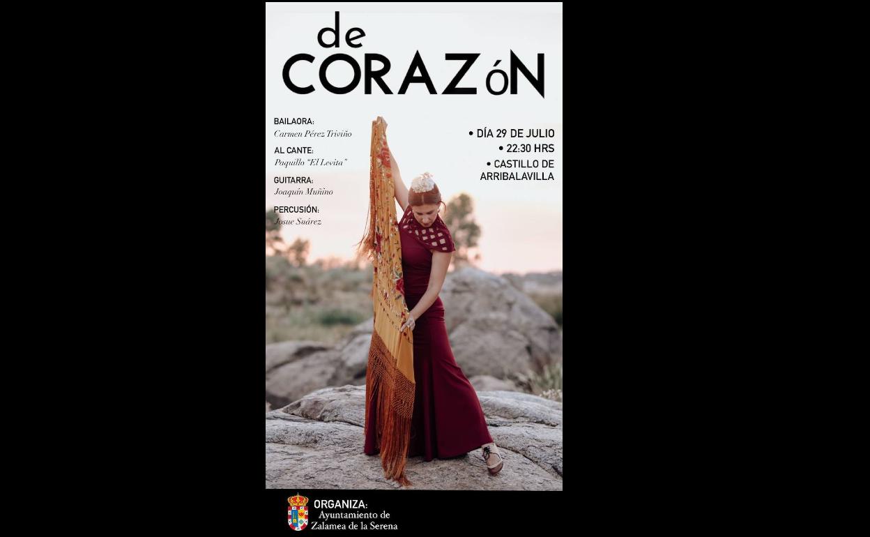 Continuando con la programación organizada por el Ayuntamiento de Zalamea de la Serena para amenizar las noches de verano de todos los ilipenses, este viernes, 27 de julio, recalará en el Castillo de Arribalavilla el espectáculo flamenco 'De Corazón'.