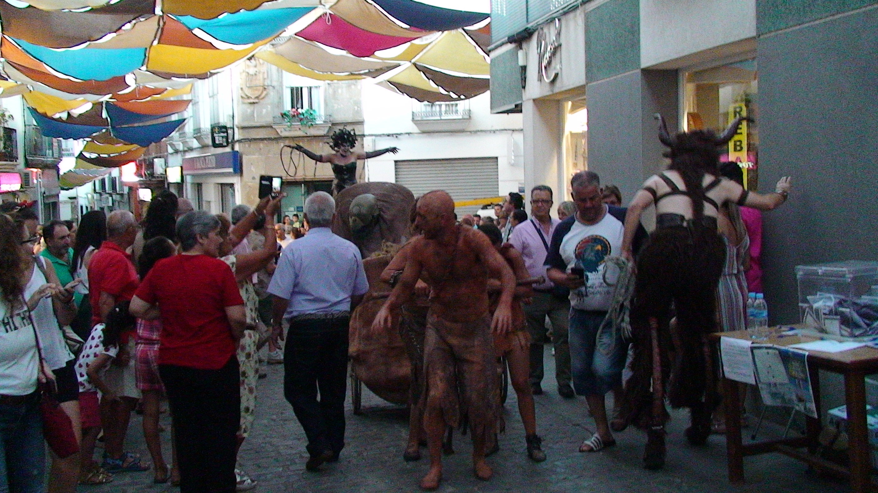 Los personajes, algunos de ellos cubiertos de barro, dieron vida a esclavos, dioses y monstruos a lo largo de más de una hora y media de recorrido. Por el camino, acompañados en todo momento por música, interactuaron con los espectadores a los que hicieron partícipes de la historia.