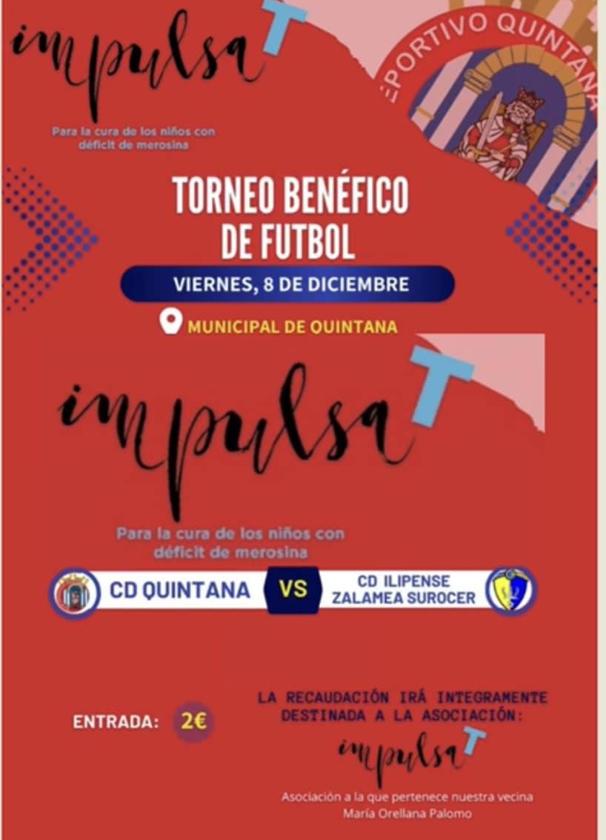 Aunque estos partidos servirán de preparación para las siguientes jornadas de liga, el torneo se ha organizado para colaborar con la asociación Impulsa-T, para la cura de los niños con déficit de merosina, a la que pertenece una vecina Quintana, María Orellana Palomo.