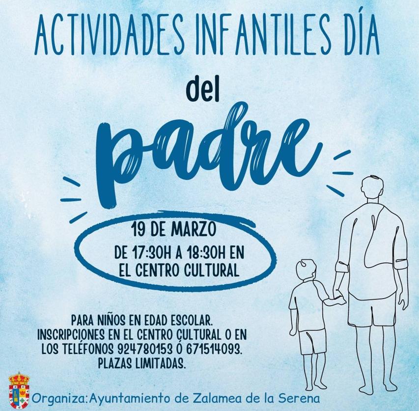 Así, desde el Ayuntamiento de Zalamea de la Serena, a través del Centro Cultural, han organizado las Actividades Infantiles Día del Padre, dirigidas a niños en edad escolar, que se llevarán a cabo de 17.30 a 18.30 horas.