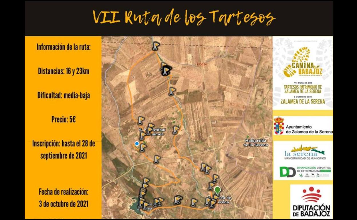 Por ese motivo, con la salida y llegada prevista en la Plaza Calderón de la Barca, la ruta de los Tartesos 'Patrimonio de Zalamea' transcurrirá en su gran mayoría por caminos amplios y de buen firme, pasando por los distintos monumentos de Zalamea de la Serena, como la Presa Romana, la Pedanía de Docenario y el yacimiento Tartésico de Cancho Roano. El recorrido de la Ruta de los Tartesos tendrá una dificultad media-baja y un trayecto circular de 16 y 23 kilómetros aproximadamente.