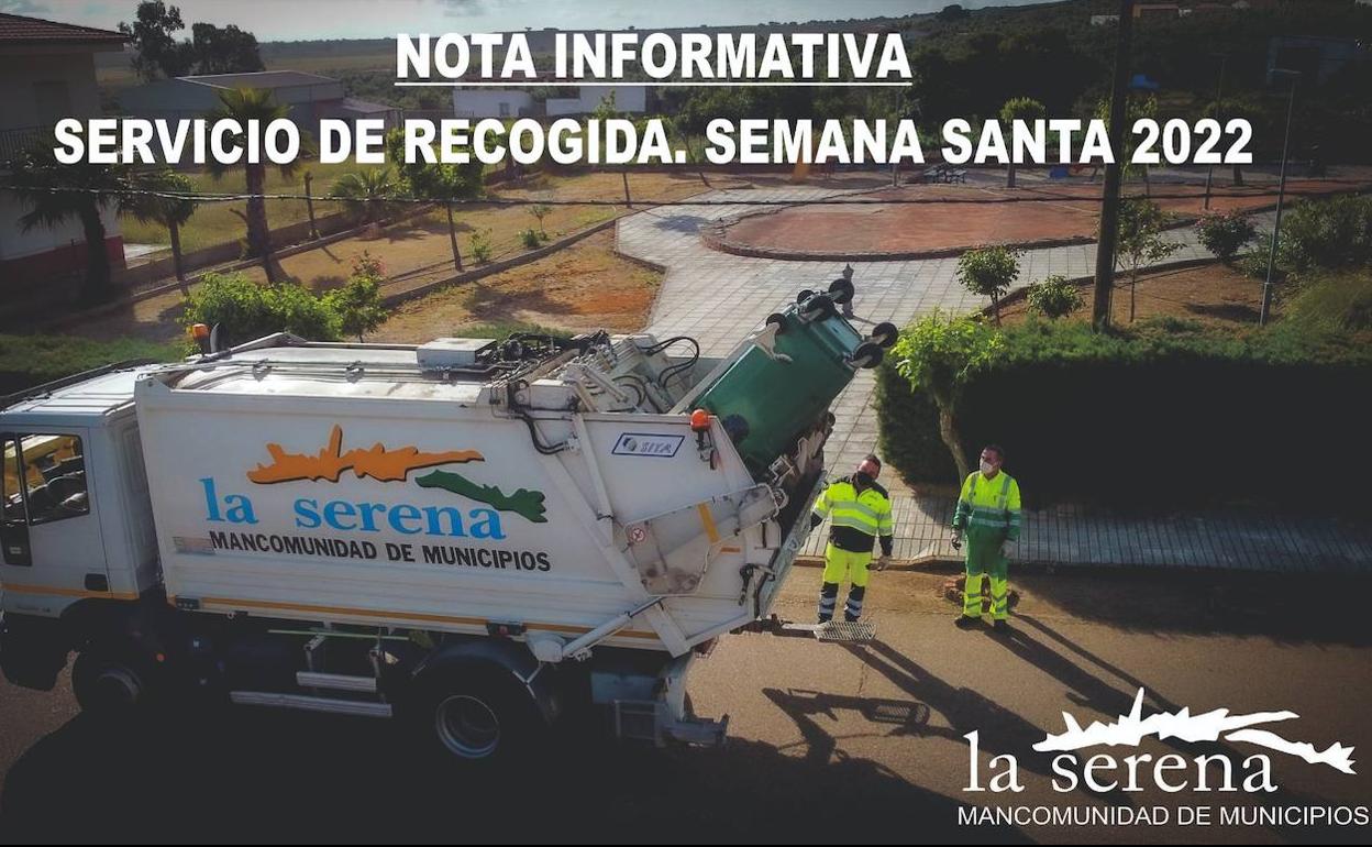 Con motivo de la Semana Santa, la Mancomunidad de Municipios de la Serena ha informado de los cambios en el horario del servicio de recogida de residuos durante los próximos días.