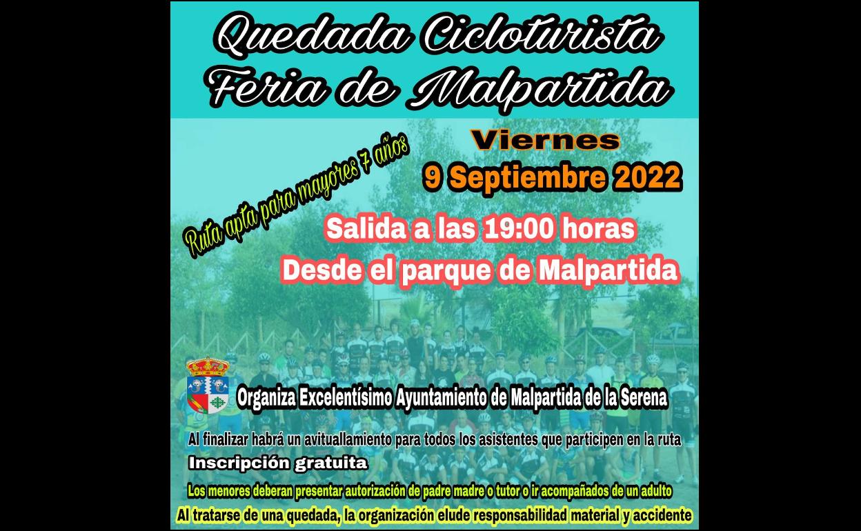 La Escuela Ciclista Diexle Zalamea y la Asociación Cicloturista Cancho Roano participarán mañana viernes 9 de septiembre en una 'quedada cicloturista' en la localidad vecina de Malpartida de la Serena, con motivo de su feria.