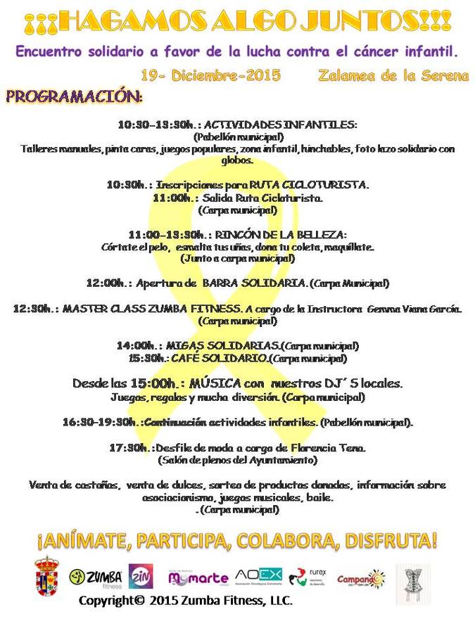 A las 12.00h se abrirá la barra solidaria donde el dinero de todas las consumiciones irán también destinado a la causa. A las 12.30h se llevará a cabo una Master Class Zumba Fitness, a cargo de la instructora Gemma V. García.