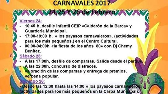 El domingo de nuevo estará dedicado a los más pequeños con los payasos carnavaleros desde las 12:30 hasta 14:00 horas en la carpa. Allí los niños despedirán el carnaval vestidos de payasos con disfraces que previamente habrán realizado en el taller. El lunes para poner el broche final a la celebración, las trabajadoras del centro cultural se desplazarán a partir de las 17:00 horas a la residencia Adolfo Suárez para vivir con los mayores de la localidad este carnaval 2017.