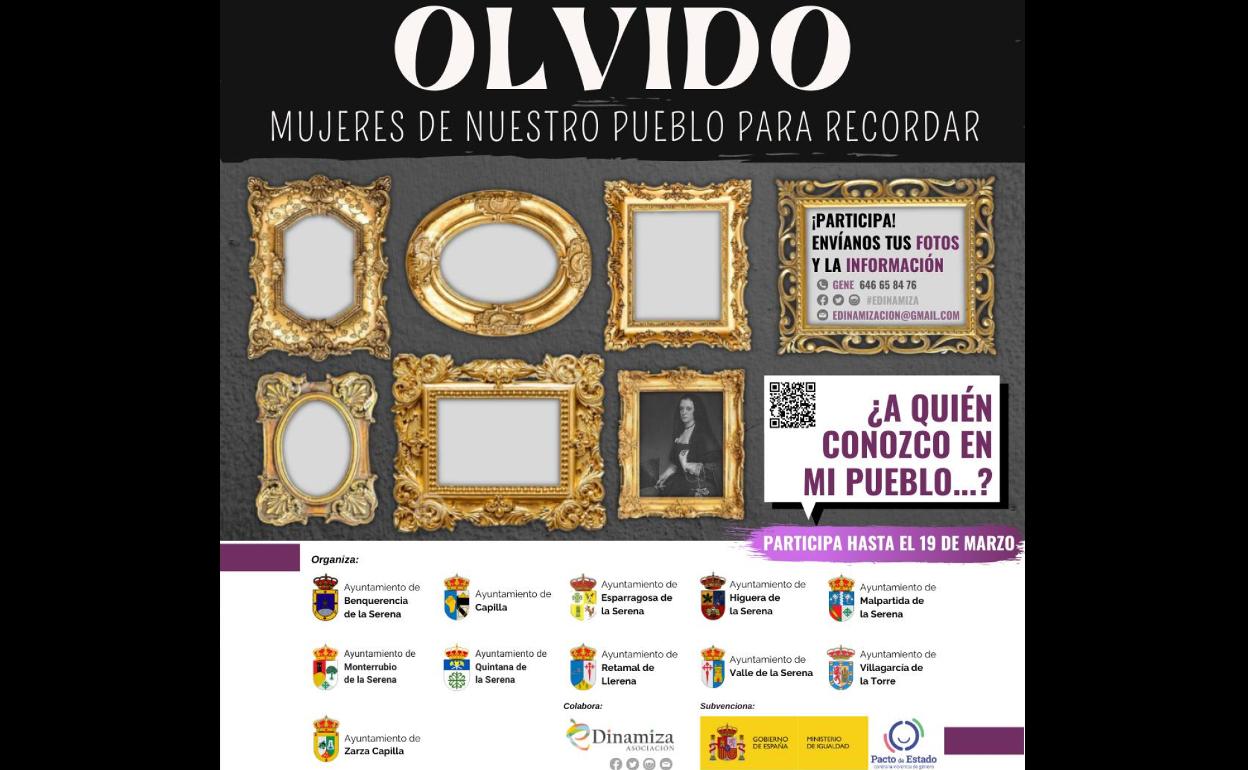 'Olvido, mujeres de nuestro pueblo para recordar' está organizado por los ayuntamientos de los municipios citados anteriormente. Este proyecto está enmarcado dentro del Pacto de Estado contra la Violencia de Género y cuenta con la colaboración de la Asociación eDinamiza.