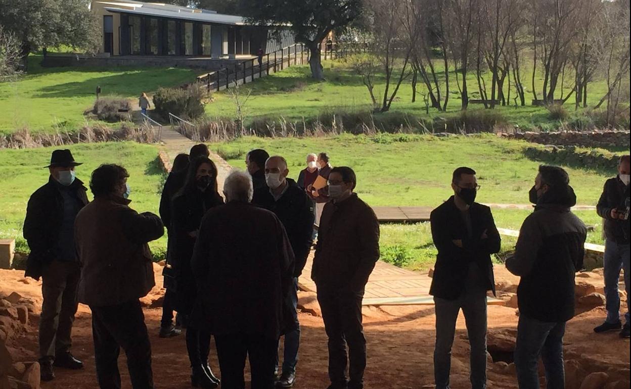 La visita al Centro de interpretación de Cancho Roano también ha contado con la presencia del Presidente de la Mancomunidad, Jesús Martín Torres; de varios alcaldes y alcaldesas de la Comarca y de personal técnico tanto de ambas consejerías como de la Mancomunidad de Municipios de la Serena.