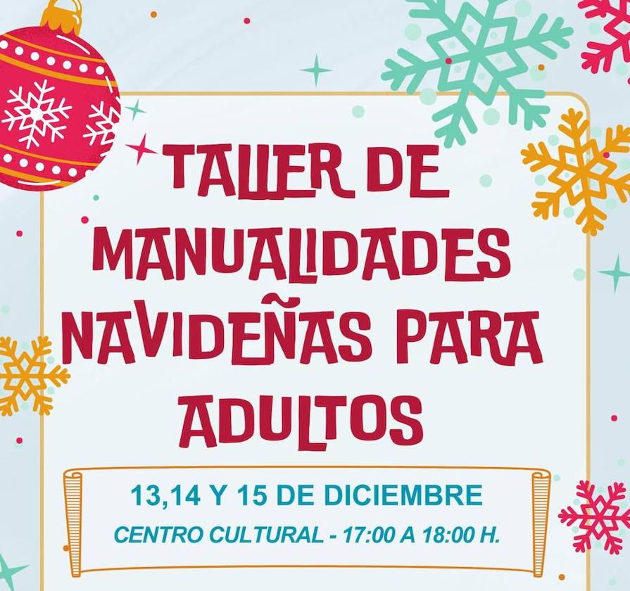 Así, comenzando hoy miércoles, día 13, y extendiéndose los días 14 y 15 de diciembre, el Centro Cultural de la localidad acogerá unos talleres de manualidades navideñas para adultos, en horario de 17.00 a 18.00 horas.