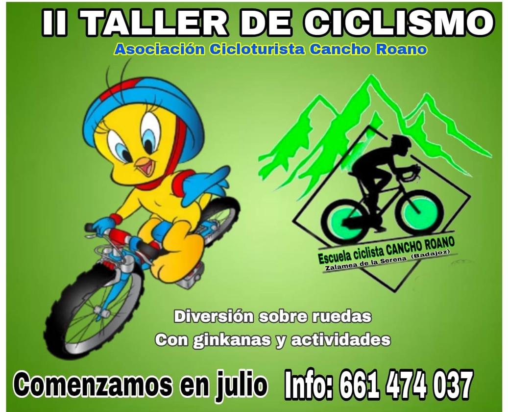 El taller de ciclismo está organizado por la AC Cancho Roano, con la colaboración del Colegio Público Calderón de la Barca, Taxi Leo y el Ayuntamiento de Zalamea de la Serena.