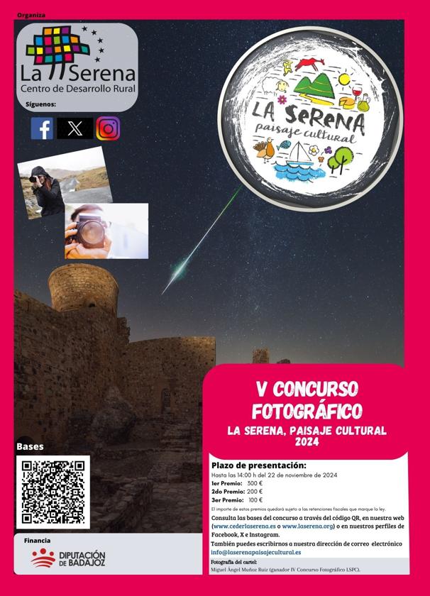 El Centro de Desarrollo Rural de La Serena 'CEDER-La Serena' ha convocado la quinta edición del concurso fotográfico 'La Serena Paisaje Cultural', cuyo objetivo ... es captar la atención de la ciudadanía hacia un territorio singular como es el de la comarca de La Serena.