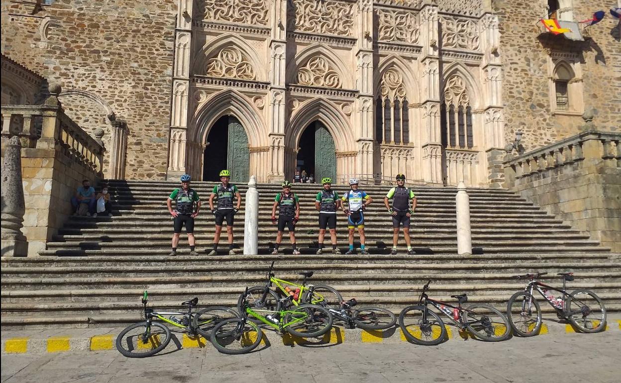 Varios miembros de la asociación cicloturista de Cancho Roano realiza una peregrinación a Guadalupe