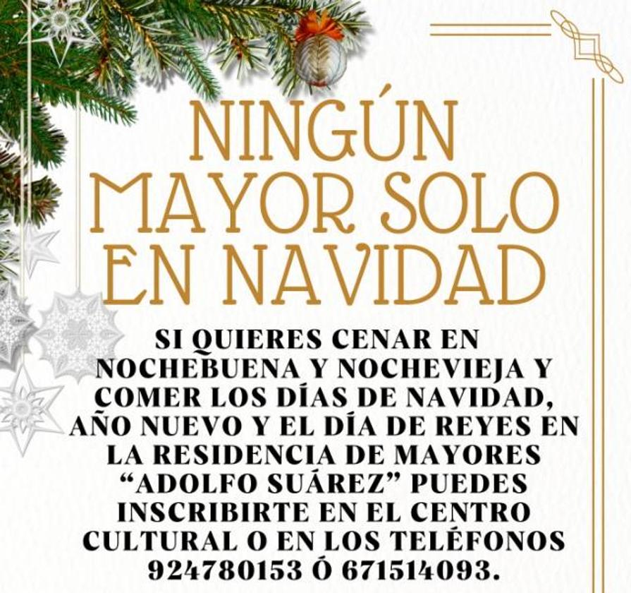 Así, aquellas personas que deseen cenar en Nochebuena, en Nochevieja y/o comer el Día de los Reyes acompañados, podrán hacerlo en la Residencia de Mayores 'Adolfo Suárez.