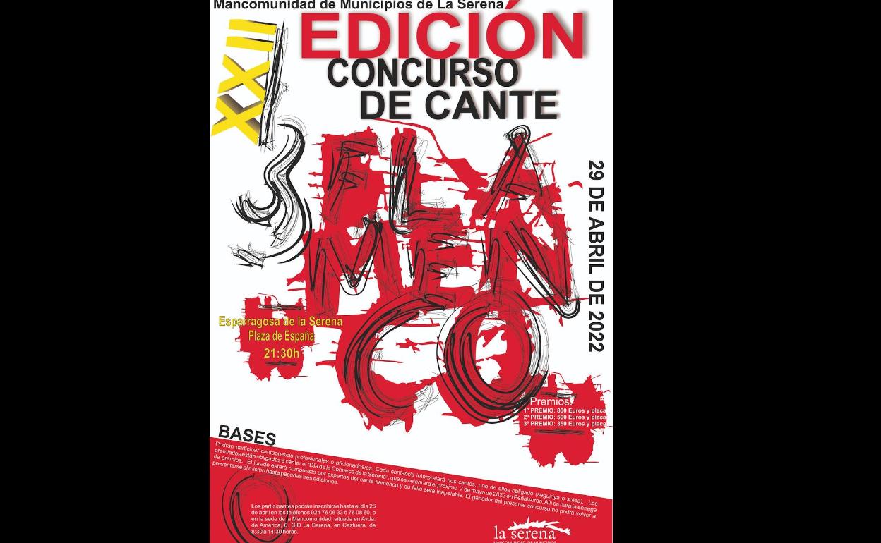 Este concurso de cante flamenco, organizado por el área de Gestión Cultural de la Mancomunidad de Municipios de La Serena y que este año alcanza su vigesimosegunda edición, goza de gran reconocimiento entre los profesionales y aficionados al cante flamenco, por lo que es habitual que en el mismo se den cita cantaores y cantaoras extremeños y otros provenientes de otras comunidades como la andaluza o la castellano manchega, con el objetivo de incluir su nombre en el cuadro de honor de un concurso en ya han estampado su nombre Cándido de Quintana (1998), Miguel de Tena (1999, 2000, 2001 y 2002), José Dávila (2003 y 2006) Manuel Pinela (2004 y 2007), Pedro Cintas (2005), Antonio de la María (2008), Agustín Sánchez (2009), Celia Romero (2010) , Javier Barquero (2011-2015-2018), Jesús León Márquez (2012), Juan Carlos Sánchez (2013), Manuel Pajares (2014), Virginia González (2017) y Ciriaco Hernández (2019) .