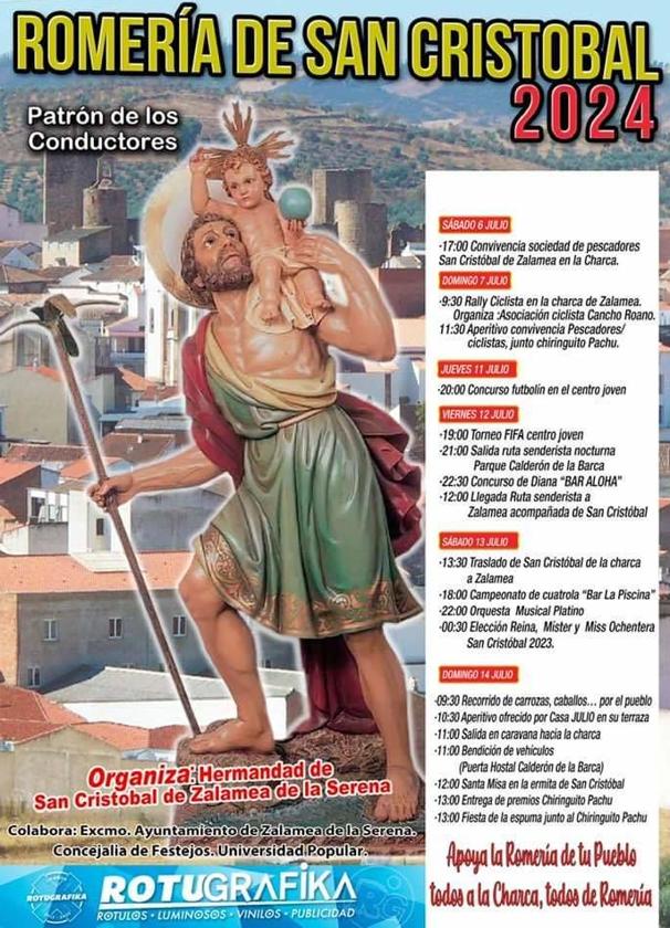 Zalamea de la Serena se prepara para volver a disfrutar de la romería en honor a San Cristóbal, patrón de los conductores, una de las fiestas más destacadas de la localidad y que cada año reúne a los ilipenses y visitantes en el entorno de la Charca de Zalamea.