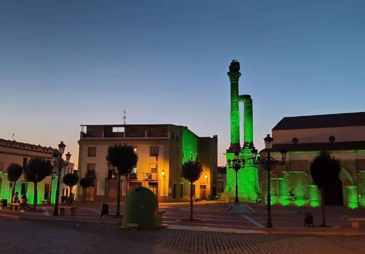 Ayer jueves, día 16 de mayo, la Plaza de la Constitución de Zalamea de la Serena y su emblemático Distylo romano se iluminaron en color verde para conmemorar el Día Internacional de la Celiaquía.